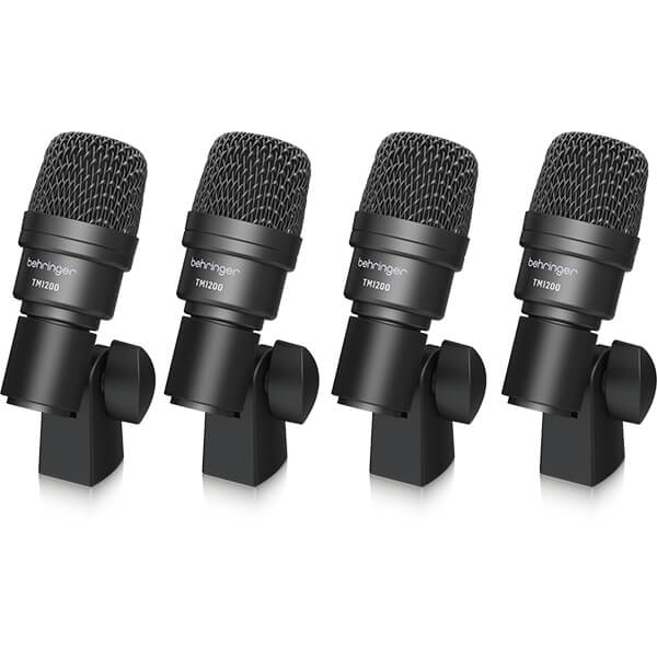 The TM1200 medium diaphragm dynamic capsules are especially tuned for toms and snares. Mount clamps onto each mic then attach each of them onto the hoop of a tom or snare drum. The angle and distance from mic to drumhead is adjustable. Position each toward the center of the drumhead for best results.