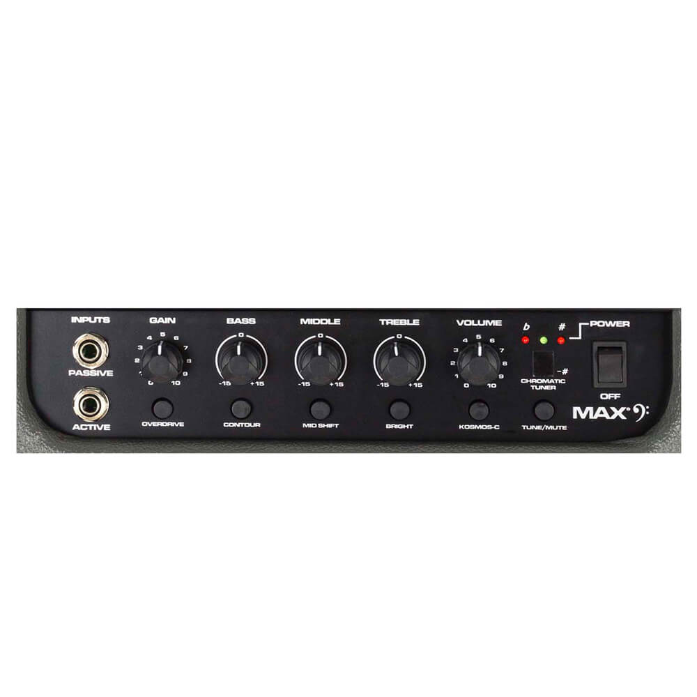 - Three-band EQ with Overdrive, Contour, Mid-Shift, Bright, and Kosmos-C switches