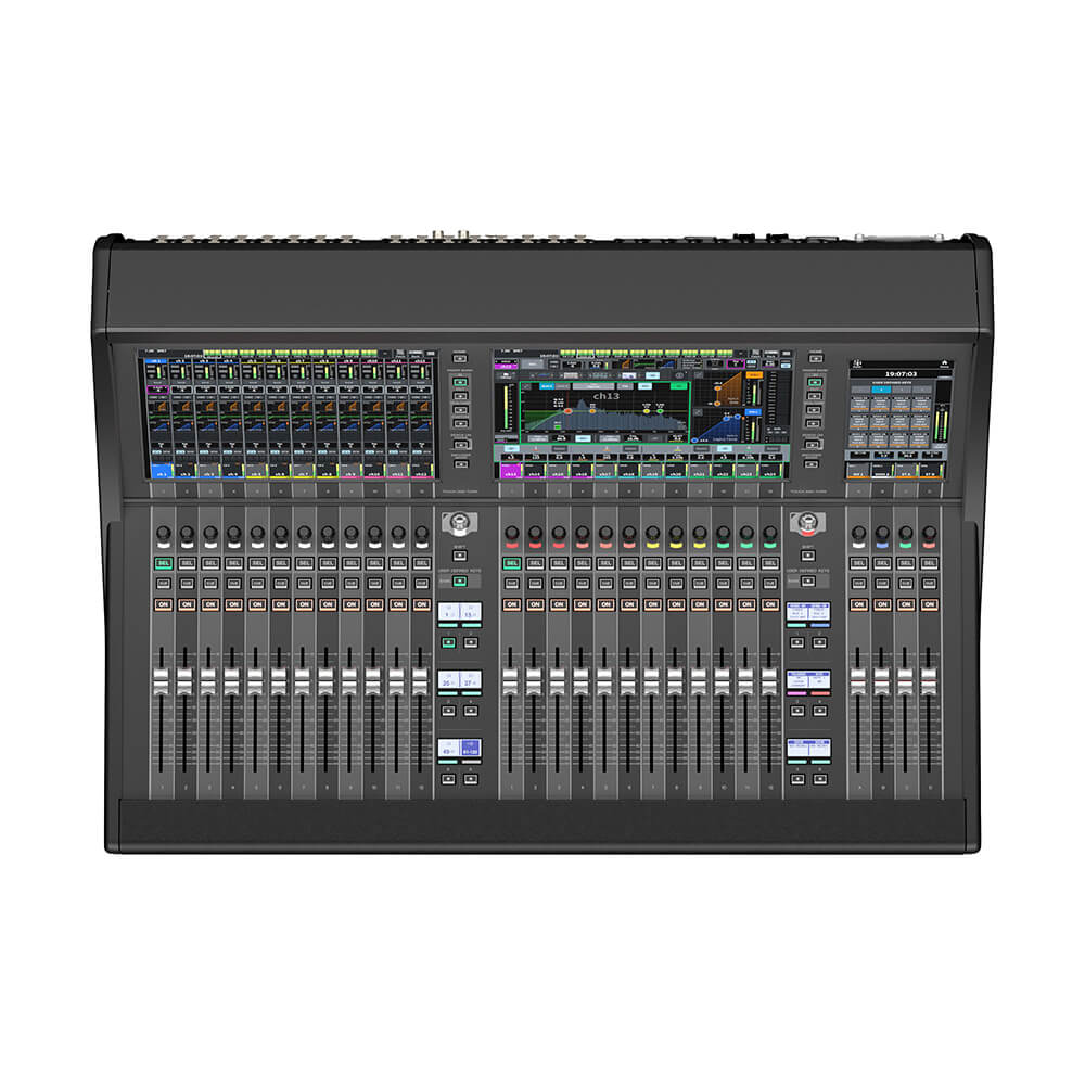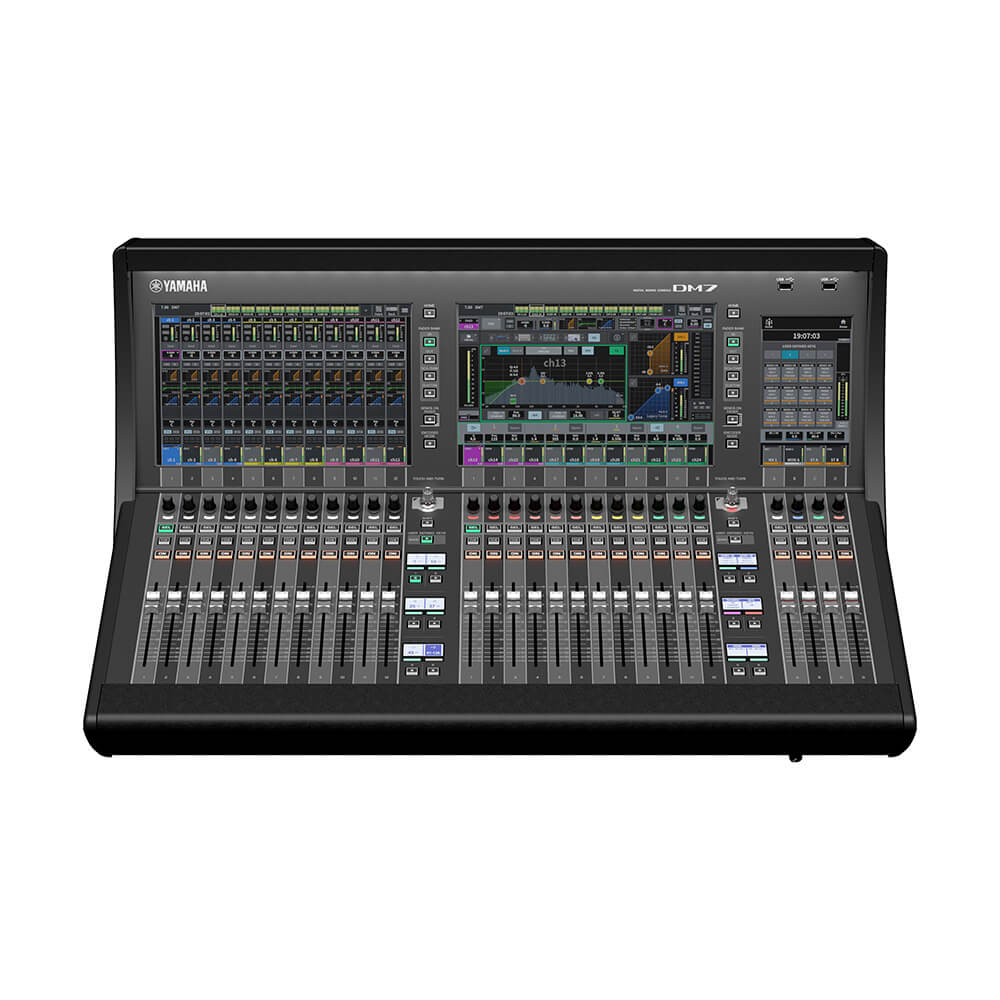 The DM7 is a Dante-equipped versatile digital mixing console with unparalleled sound quality, ease of operation, and high reliability that make it perfect for a wide range of applications. The DM7 is configured with 24 + 4 faders and a 2 x 12” + 1 x 7” multi-touch screen.